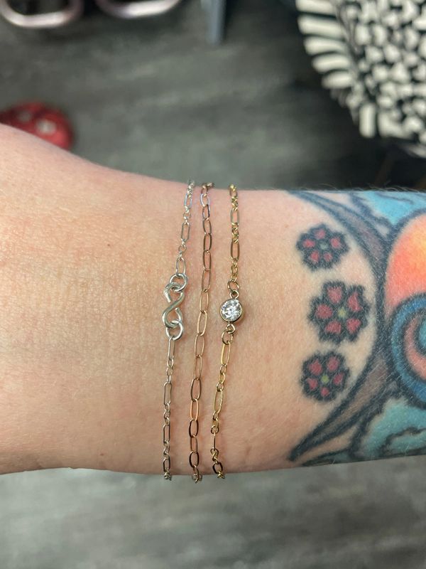 Permanent Jewelry is custom fit and personalized to your style. Choose from a variety of link options and metal types.